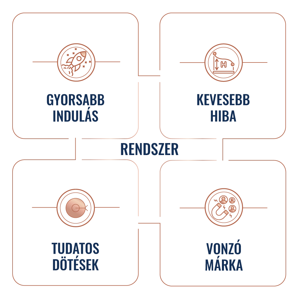 Ezt úgy érjük el, hogy egy stratégiailag felépített rendszerbe tesszük az indulásod, és olyan profi online jelenlétet kapsz, ami a világ felé is azt üzeni: készen állsz.